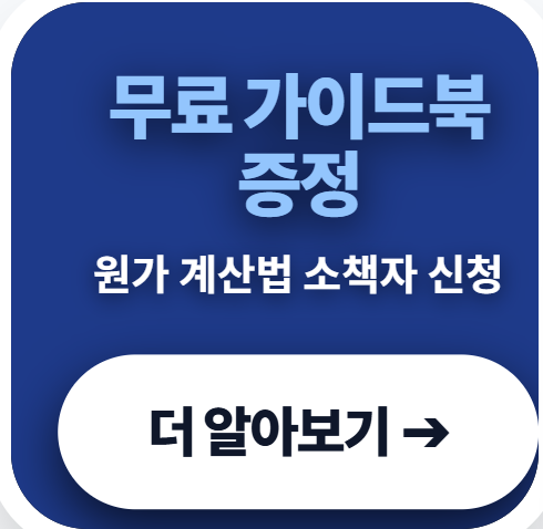 지금 당장 우리 회사의 원가 구조와 수익성이 올바른 방향으로 가고 있는지 점검이 필요하시다면 전문가의 도움을 받는 것도 좋은 방법입니다. 서론에서 말씀드린 강동형 세무회계 사무소의 《제조원가 정의 + 계산 방법 + 실무 적용법》 무료 소책자를 신청하셔서 내년도 비즈니스 전략을 수치로 명확하게 세워보시길 바랍니다. 링크를 클릭해 간단한 정보만 남겨주시면 친절하게 안내해 드리겠습니다.