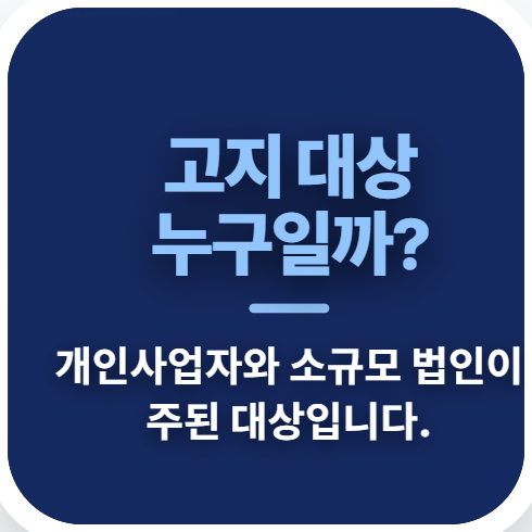 | 제외 대상 | 간이과세자에서 일반과세자로 변경된 자 | 해당 과세기간에는 고지 제외 |